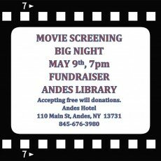 5.9-FUNDRAISER FOR THE ANDES LIBRARY, 7pm Screening of the movie Big Night. Accepting free will donations for the Andes Library. Italian themed small plates, as well as regular entrees and tavern menu items will be available. ...